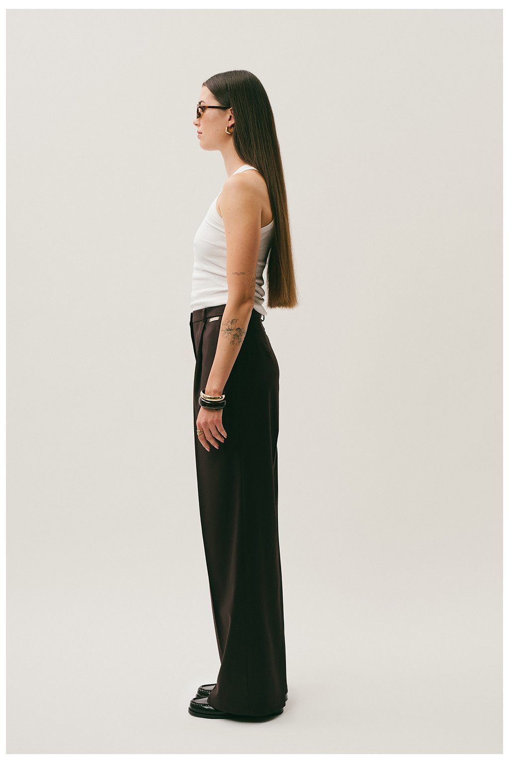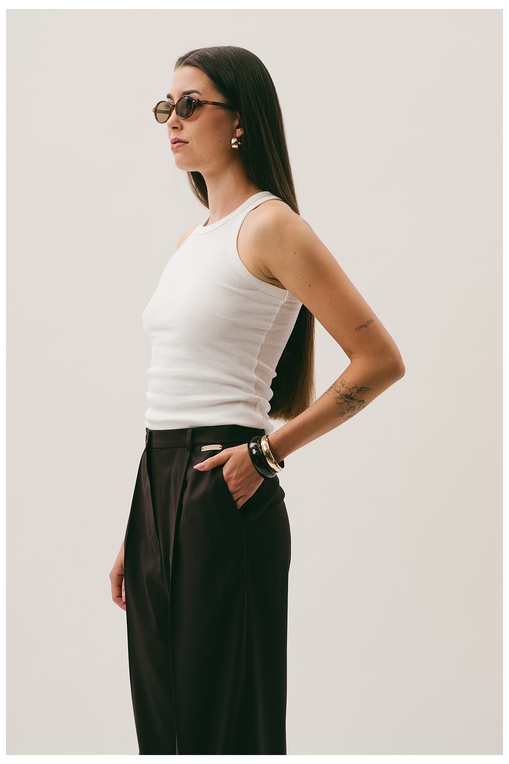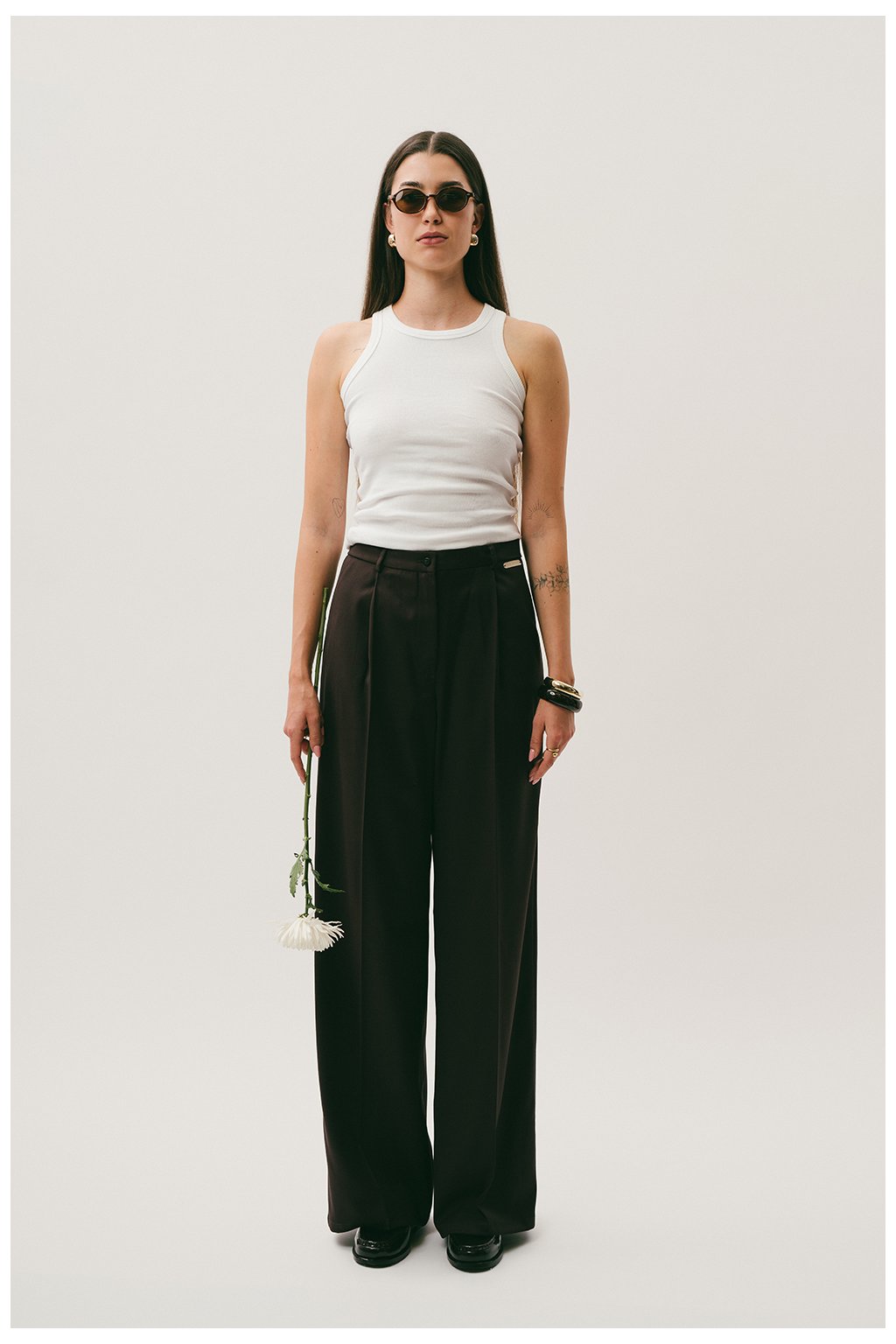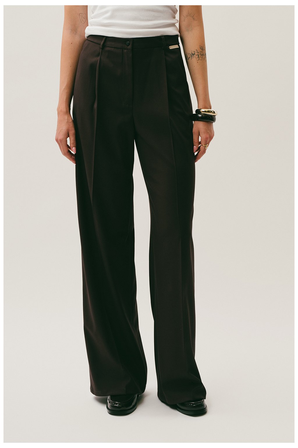 Tip: Kalhoty Clara kombinuj s oversized košilí nebo tenkým rolákem pro nadčasový business-casual look. Pokud chceš outfit odlehčit, sáhni po crop svetříku nebo jednoduchém basic tílku.