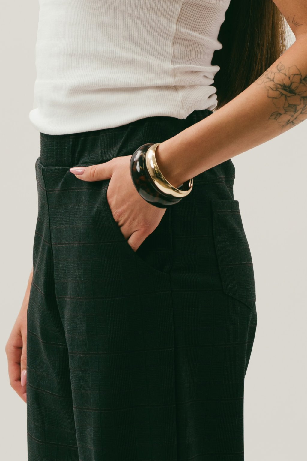Naše bestsellerové Stelly dostaly nový kabátek – tentokrát jsme je ušily v minimalistickém podzimním vzoru, který dodá šmrnc každému outfitu. Šedo černá kostka s nenápadnými odstíny vínové a zelené působí elegantním a nadčasovým dojmem. Díky kombinaci širokého střihu a pružného materiálu s elastanem jsou nejen pohodlné, ale i lichotivé k postavě. Praktické kapsy na bocích i zadním díle dodávají kalhotám ležérní vibe, zatímco sedlo na zádech zajistí, že krásně sedí.