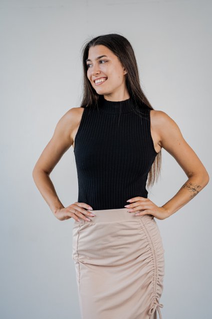 Béžový dámský top Vita jsme ušili z pružného žebrového materiálu, má jednoduchý střih s americkými průramky a malým stojáčkem. Je takovým univerzální kouskem pod "všechno" - skvěle se hodí pod sako, bundičku, kardigan nebo maxi košili. Ale udělá parádu i jako samotný kousek ke kalhotům nebo sukni. Díky trošce elastanu v materiálu , krásně obepne postavu a přizpůsobí se tvým křivkám.