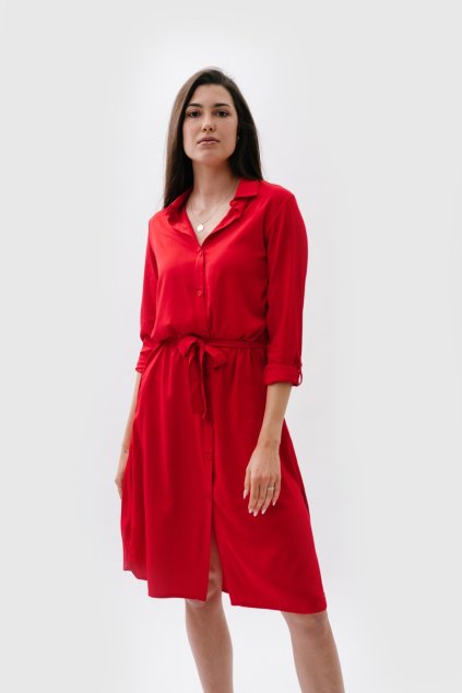 Naše klasické košilové šaty Anita jsme ušili ze splývavé viskózové tkaniny s malým podílem elastanu. Jsou celopropínací, s klasickým límečkem, mají volný střih, na zádech sedýlko s protizáhybem pro maximální pohodlí při nošení a dlouhý rukáv, který se dá ohrnout na 3/4 délku a zapnout přezkou. V bocích mají šaty jednoduché kapsy pro pár maličkostí. Přidali jsme i pásek na zavázání, kterým si vykouzlíte ženskou siluetu. Šaty jsme zakončili lichotivými oblouky. Materiál je lehký, vzdušný, velice příjemný . Šaty se hezky kombinují s teniskami a bundičkou, ale parádu udělají i s lehkými pantoflíčky nebo sandálky.