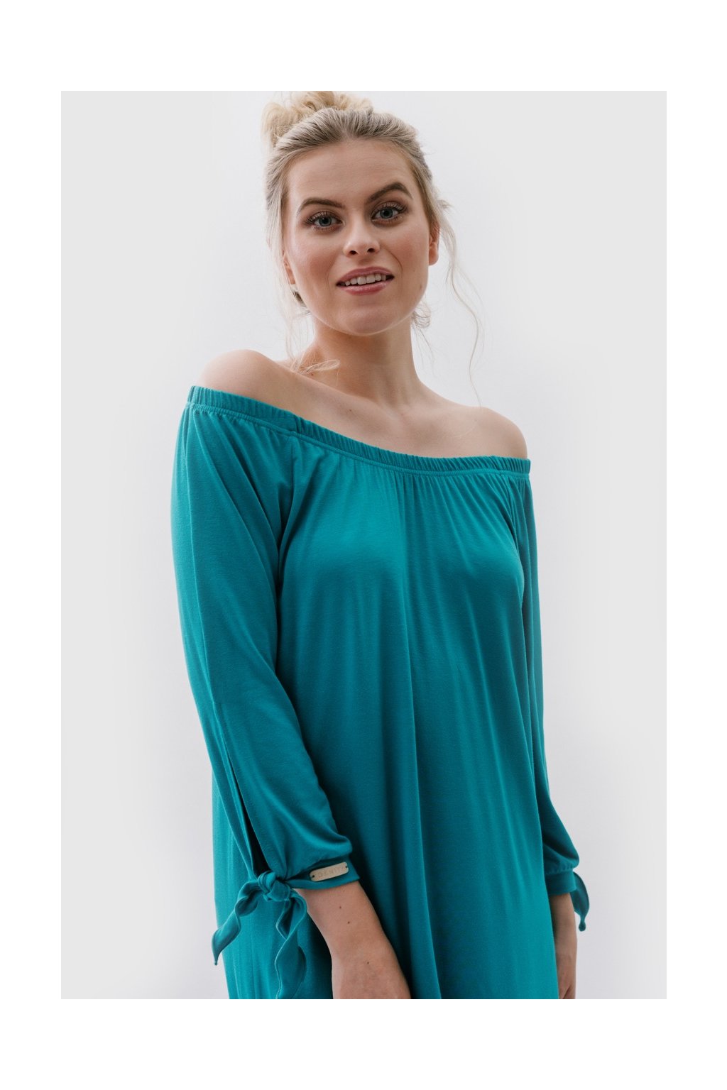 Z lehké splývavé viskózy jsme ušili rafinované šaty Penelope. Mají odhalená ramena, čím krásně zdůrazní krk a dekolt. Ale v případě, že nechcete ramena odhalovat, lze rukávy povytáhnout a ramena schovat. Rukáv je delší, s vysokým rozparkem, s manžetkou a ozdobnou vázačkou. Jsou volnější a mají áčkový střih. Materiál je příjemný na nošení, lehký, ideální na letní dny. Jsou skvělé na každodenní nošení, ale s vhodnými doplňky a podpatky udělají parádu i na jakékoliv společenské události.