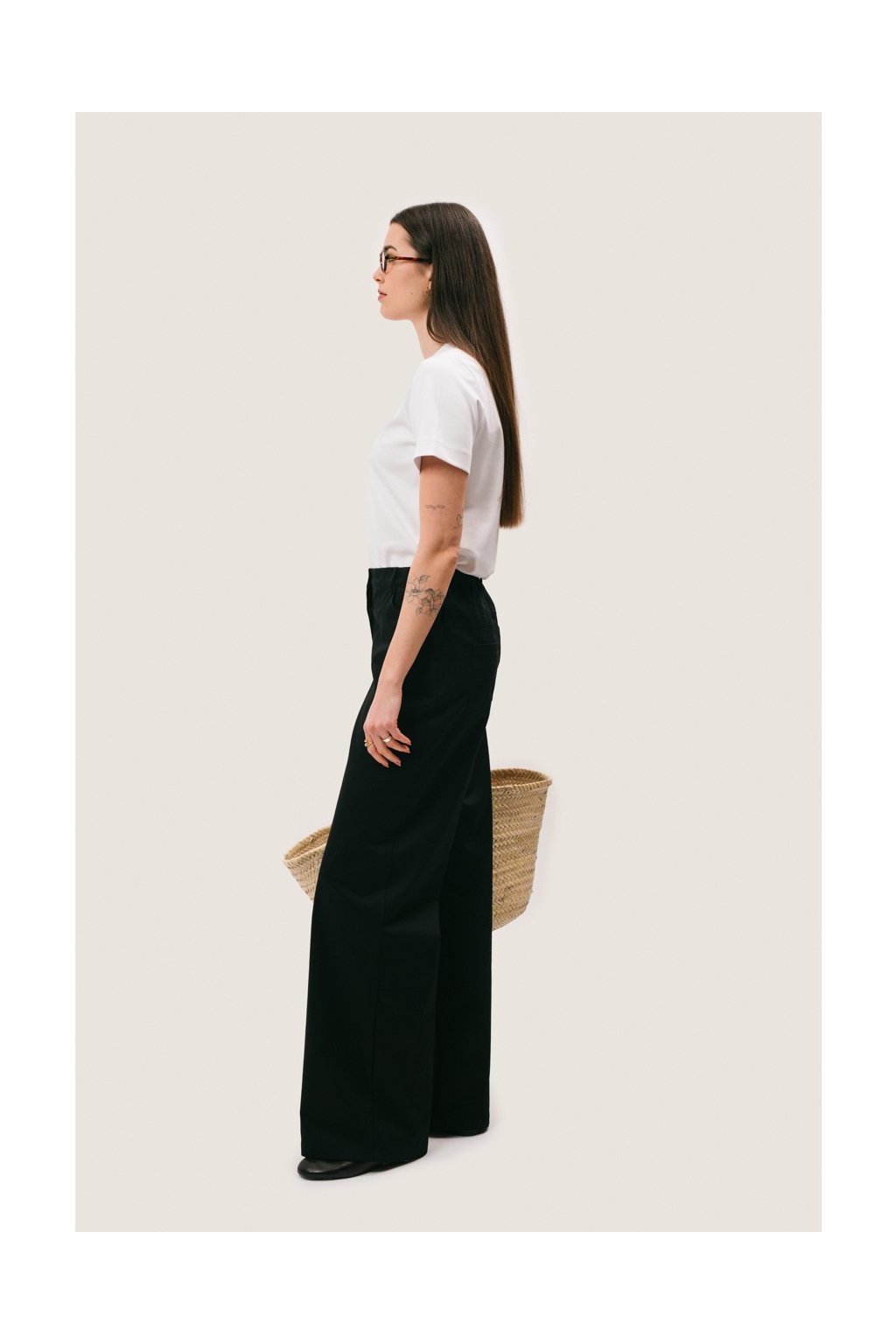 Nadčasové tričko z kvalitní bavlny s vysokou gramáží, které vyniká svou jednoduchostí a čistým střihem. Materiál typu interlock je hutný, hladký a příjemný na dotek, díky čemuž krásně drží tvar a působí luxusněji než běžná trička. Střih je navržený tak, aby přirozeně kopíroval ramena a v těle volně splýval. Vzniká tak elegantní basic kousek, který se snadno kombinuje a stává se spolehlivým základem každodenního šatníku. Kolem kulatého výstřihu je širší lem z elastického žebra, který podtrhuje čistý a nadčasový charakter trička.